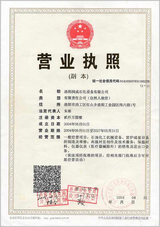 公司的營業范圍:石油化工機械設備、窯爐成套設備的制造及維修;高溫襯里制作及技術服務;保溫材料儀器儀表(醫療器械除外)的銷售及進出口業務。 公司生產的主要產品有:LRC 系列天然氣分離計量裝置、高壓防硫分離器、
