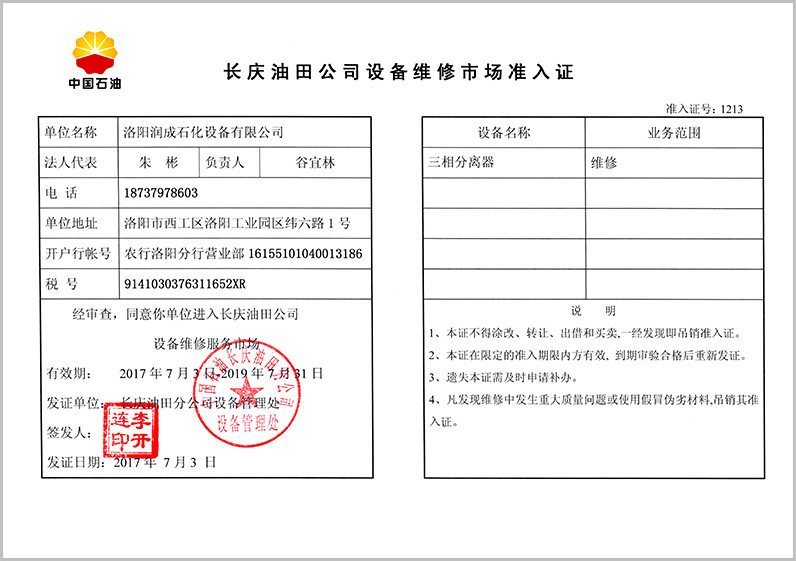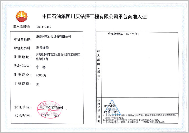 • ? 中國石油集團川慶鉆探工程有限公司承包準入證